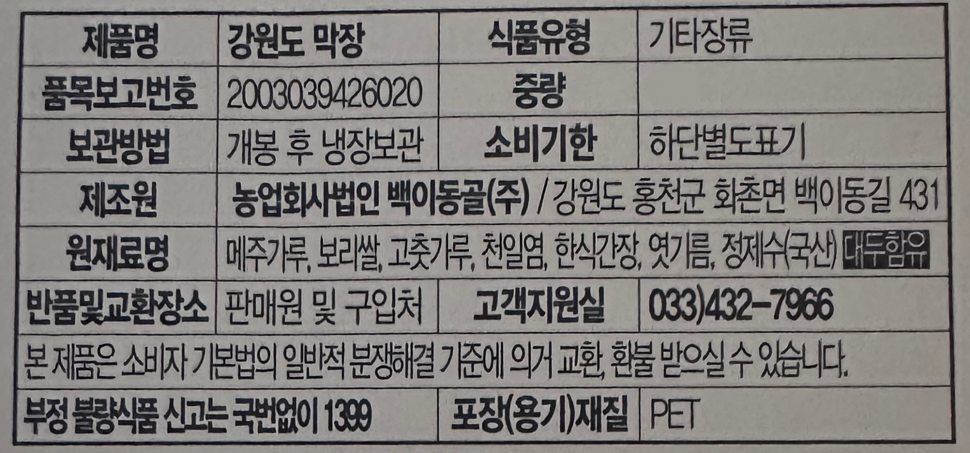 백이동골 이로운 막장 1kg