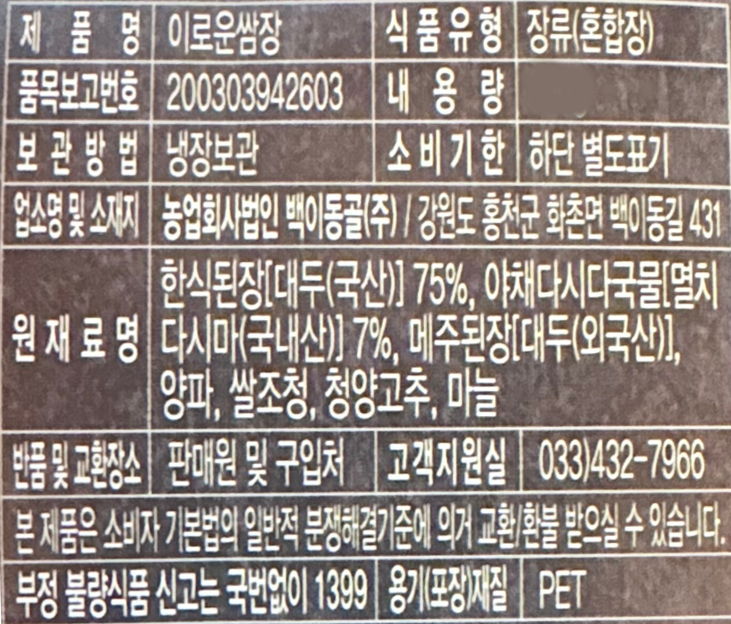 백이동골 이로운 쌈장 300g